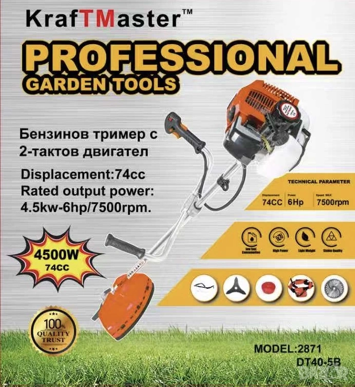 Бензинов Тример за трева 2-тактов KrafTMaster 75 куб. + 8 ПОДАРЪКА
