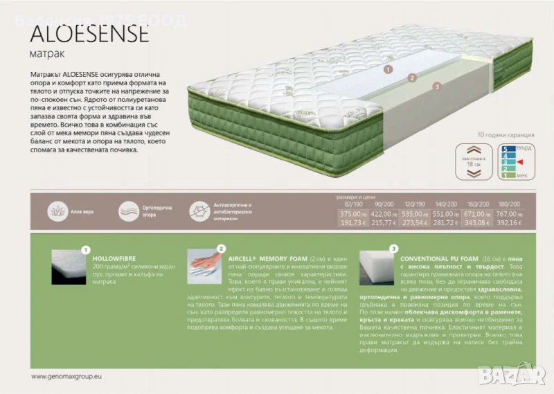160/ 200/ Н18 см- 671 лв/ 343,08 €;