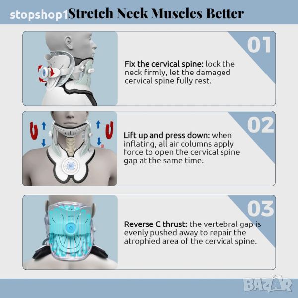 Neck brace Устройство за теглене на врата, електрическа въздушна помпа с 3 захранващи тракции и 8 оп
