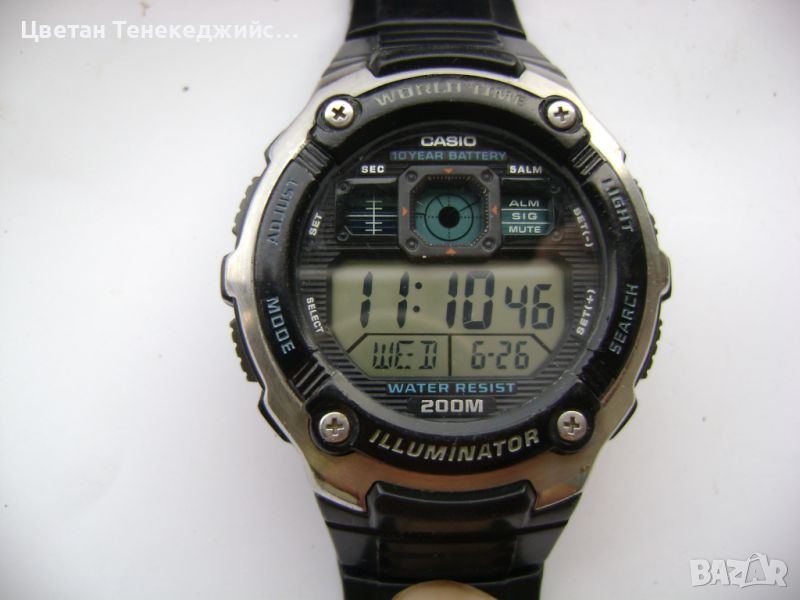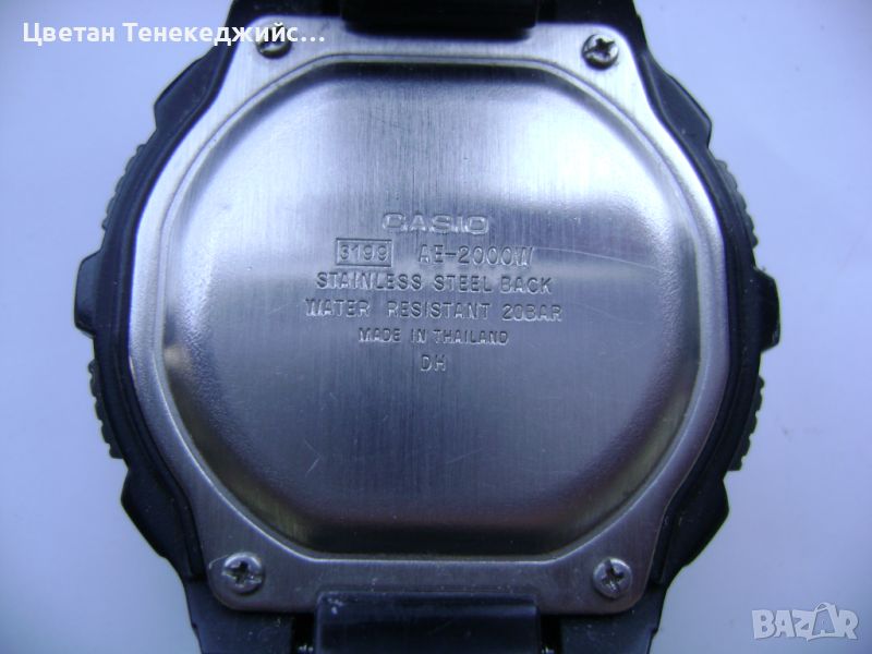 3.Кварцов часовник Casio AE-2000W.Работи точно.Перфектно състояние.5 аларми,таймер обратно броене,хронометър,водоустойчив 20 бара,световно време,подсветка.Диаметър на касата 47,7мм.Полимерна каишка-60лв.Продаден.