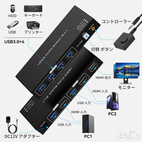 HDMI KVM превключвател 2 компютъра 1 монитор Поддръжка на 4K@60Hz, 4 х USB 3.0