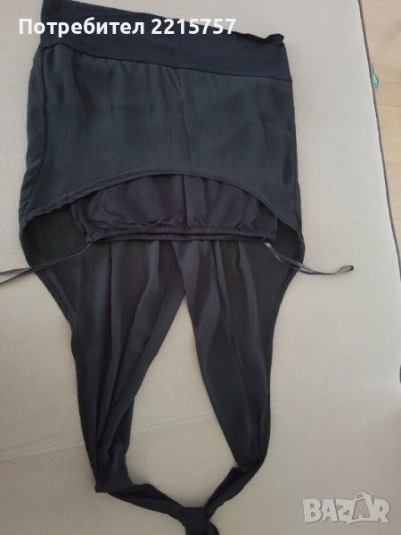 1)Пола тъмносива, прозрачна тюл отдолу с бродерия. Много елегантна за по-специални поводи. Отвътре има трикотажна пола. рр.С-М. С широка ластика на талия. Цена намалена на 15лв...................................................................................................................2)Блузка от черен шифон с подкладка от вискоза. ефектен модел отворен гръб, връзва се на шията. Цена 10лв...................................................................................................................3)Дънкова пола. Нова с етикет. Рр.ХС-С. Дъл.71см, ханш 45см, талия 36см ед.дължина. Закупена от Италия. Цена 10лв