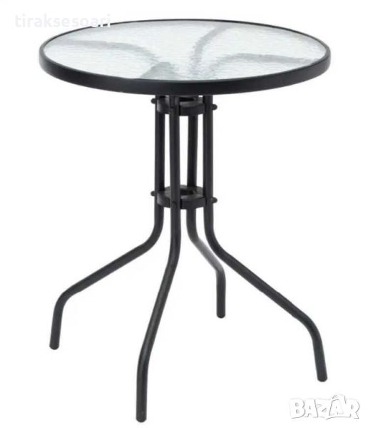 Градински комплект от 3 части, включващ: кръгла маса със стъклен плот и два стола, изработени от PVC ратан.