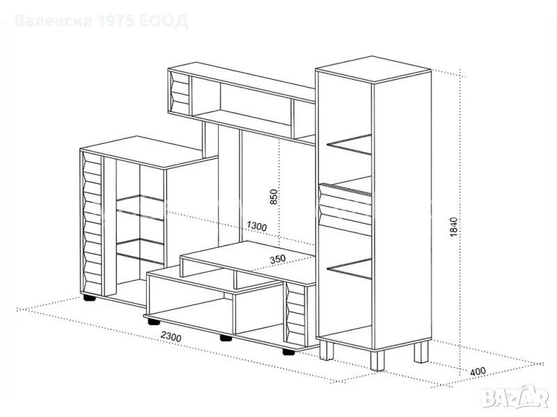 Размер за тв: 130/ 35/ Н85 см;