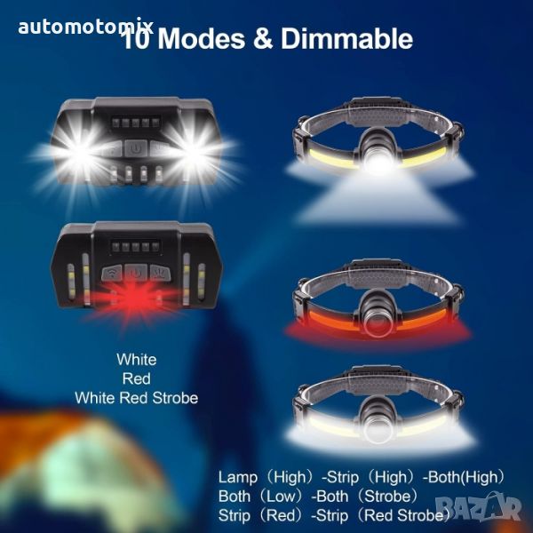 Мощен LED фенер за глава с регулируем ъгъл на наклон до 90°.