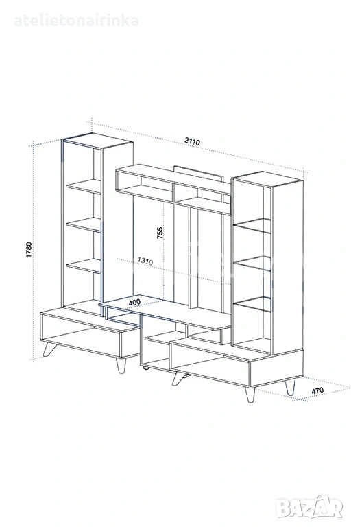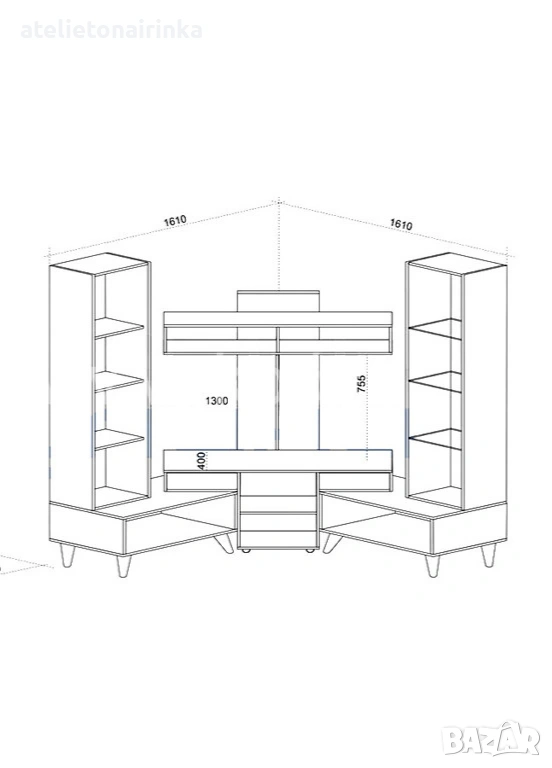 Място за тв : 130/75,5 см.
