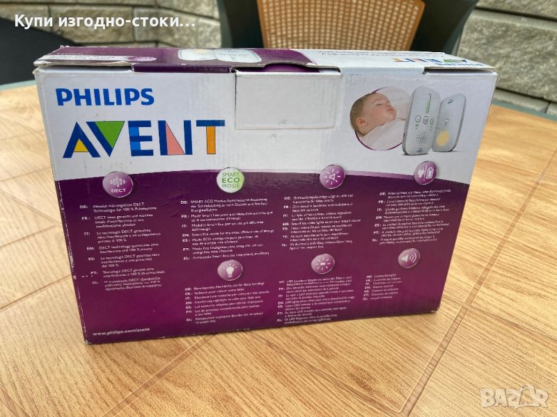 Бебефон SCD505/00 на Avent е бебефон, който ще осигури идеална връзка, за да можете да контролирате и слушате бебето си от всяко място в дома си, помагайки ви винаги да сте спокойни и в безопасност. Има регулируем приемник за звук и сила на звука, ECO режим с ниска мощност, LED светлини за индикация на нивото на звука и обхват до 330m на открито, 50m на закрито.