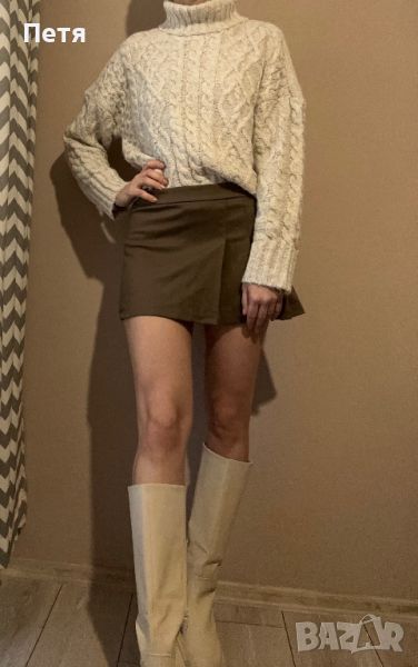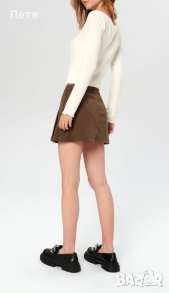 Къса плисирана пола цвят кафяв → Обява 46383847