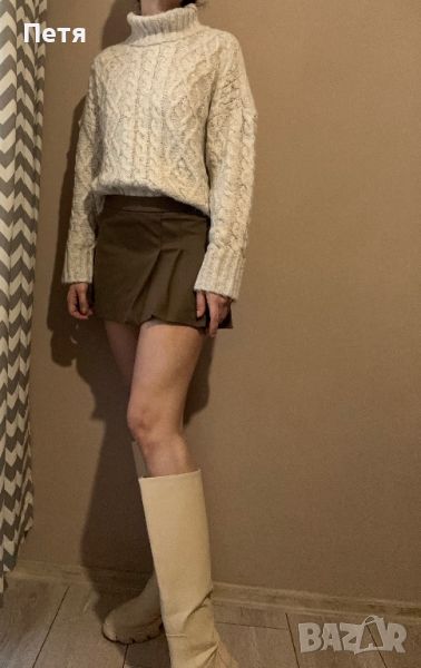 Мини плисирана пола. Разкроена кройка. Пепелно кафяв цвят. Мек кадифен плат. Размер S. Закопчаване с цип. Нова.