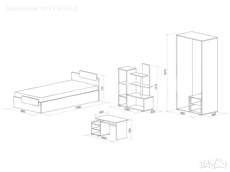 Двукрил гардероб с огледало, две чекмеджета,рафт и лост за закачалки: 89/ 48/ Н181 см;