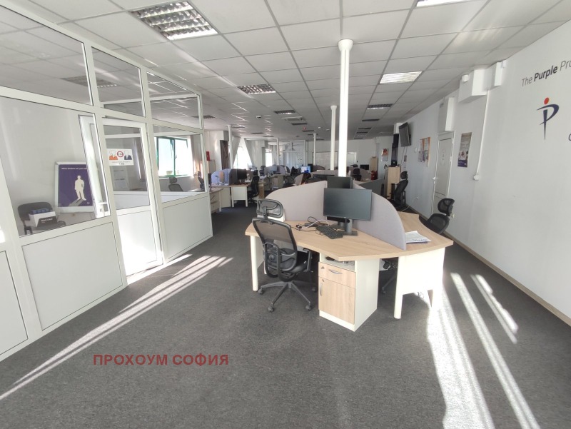 Агенция 'ПРОХОУМ СОФИЯ' предлага различни офис помещения в района на Летище София. Намира се на трети етаж в база със складови помещения и офиси. Всеки офис има отделен санитарен възел. При нужда може да се отдаде и различна квадратура от посочената. Денонощна охрана и възможност за паркоместа.