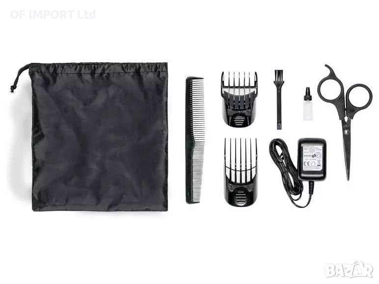 - ножица, гребен, масло за смазване на остриетата, адаптер, четка за почистване и калъф за съхранение