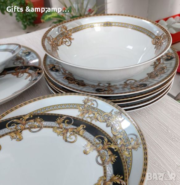 Включва чинии за предястие, основни, дълбоки по 6 бр и купа за салата 1 бр. Нов в кутия!