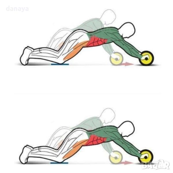 Фитнес уред за тренировки на коремните мускули, ръцете и раменете. Подходящ за домашна употреба. Двойно колело за по-добро сцепление и контрол. Упражнявате се чрез приплъзване с колене опрени на земята.
