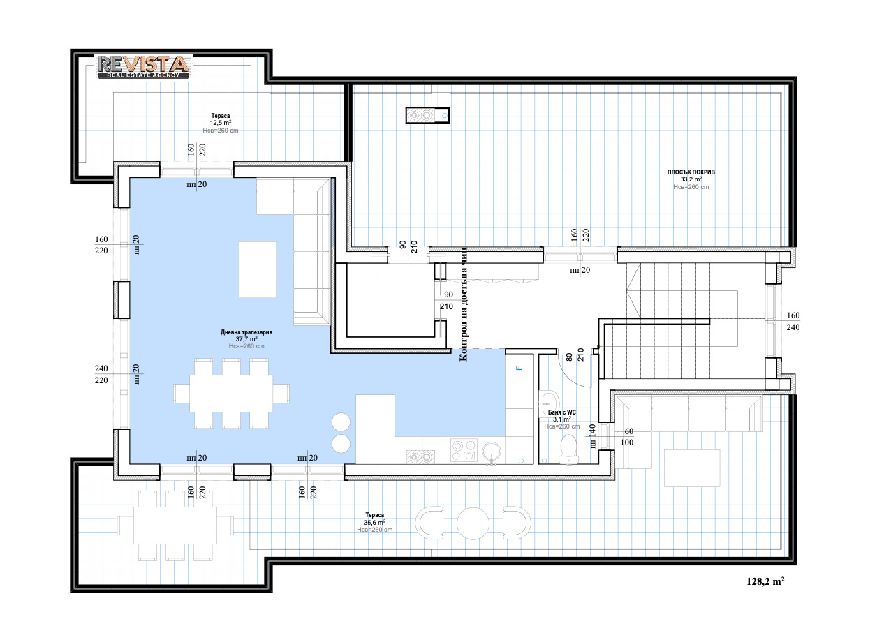 ➡️ Мезонет, който можем да Ви предложим в комплекса, със следните основни параметри ➡️ изложение: Изток-Запад-Север-Юг, етаж: 3 и 4, застроена площ: ниво 1: 154,30 кв.м. - три спални,гардеробно, две баня+WC, две тераси и ниво 2: 75,80 кв.м. - дневна с трапезария и кухненски бокс, баня + WC, тераса; общи части: ниво 1: 32,54 кв.м. и ниво 2: 15,99 кв.м. и открита тераса;