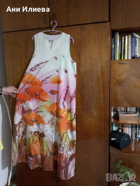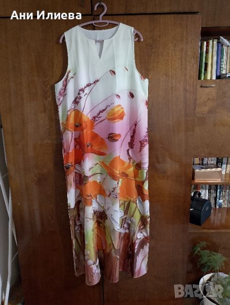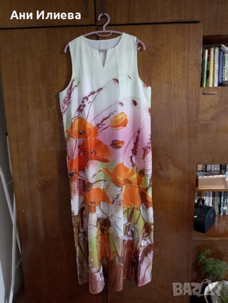 Много красива. Летни греещи цветове. Нова без етикет, само пробвана. 95% полиестер, 5% спандекс. Води се 2XL : 108 гърди - 136 ханш -140 дължина. Става и за официална, и за ежедневна.