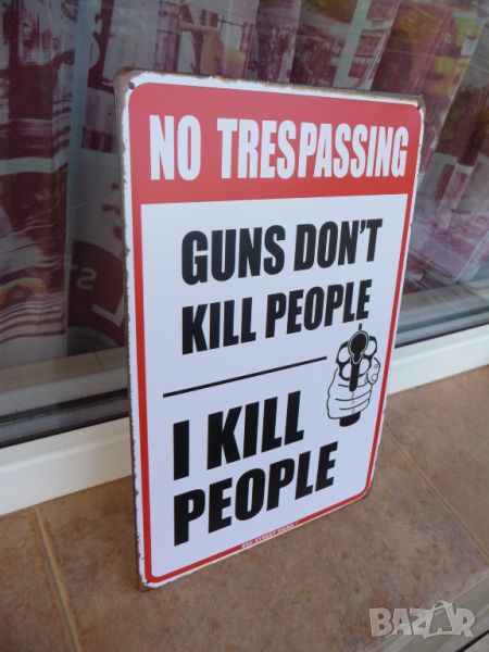 Метална ламаринена табела - Guns don't kill people, I kill people.