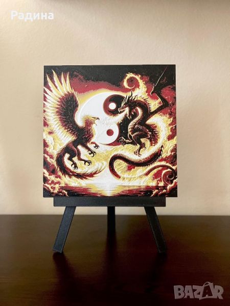 Релефна картина Дракон и Феникс в символа Ин - Ян