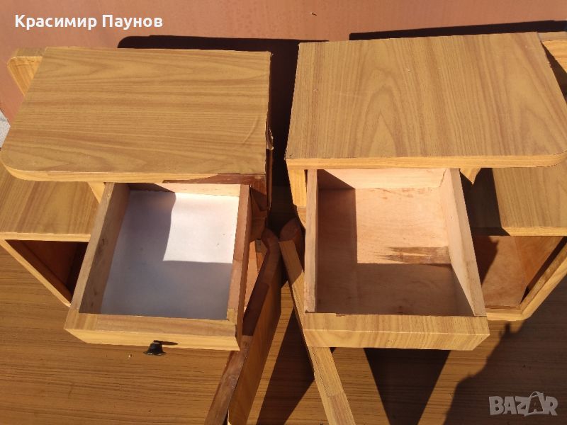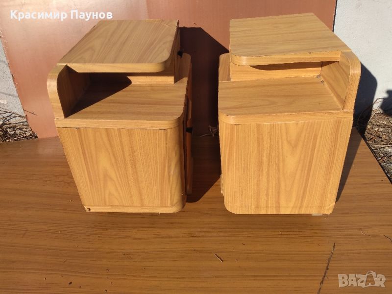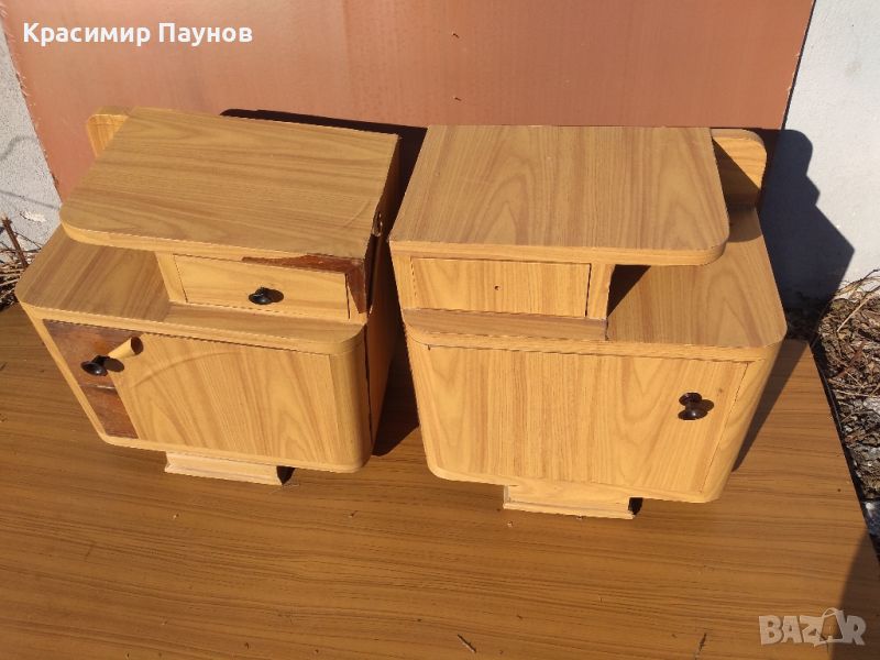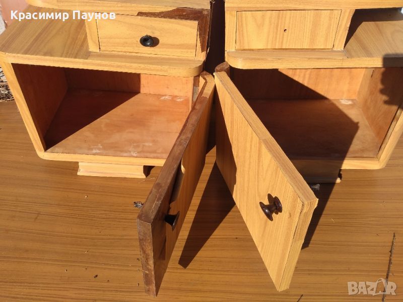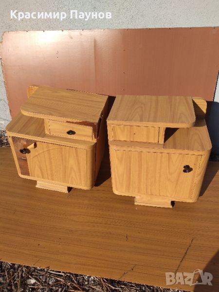Ретро нощни шкафчета ,запазени ,с налични чекмеджета ,здрави врати и панти . Облепени са с фолио което може да се смени или премахне . Лично предаване ,след предварителна уговорка .