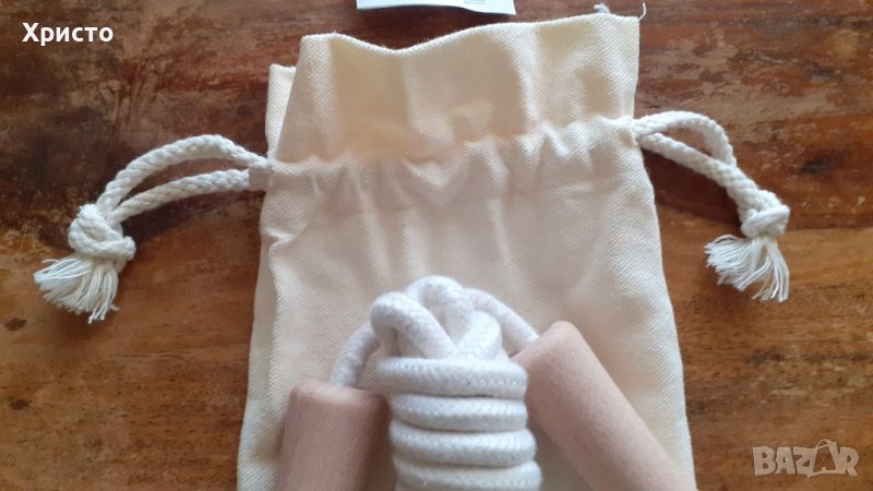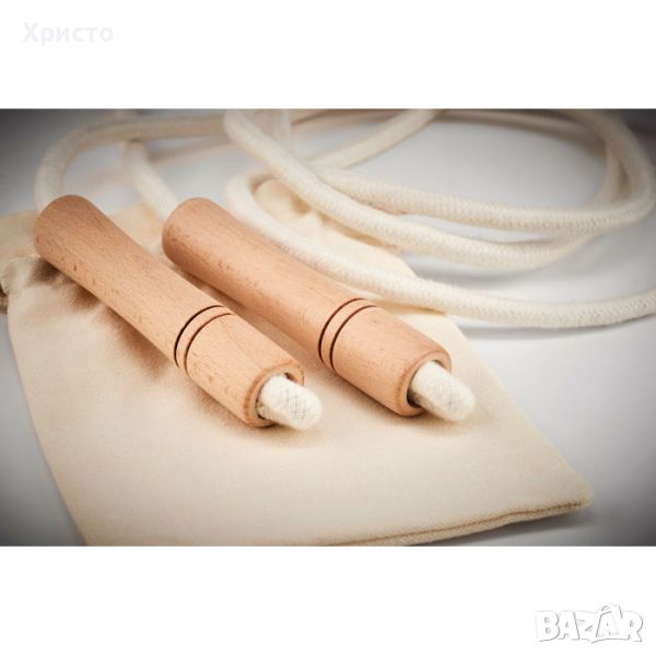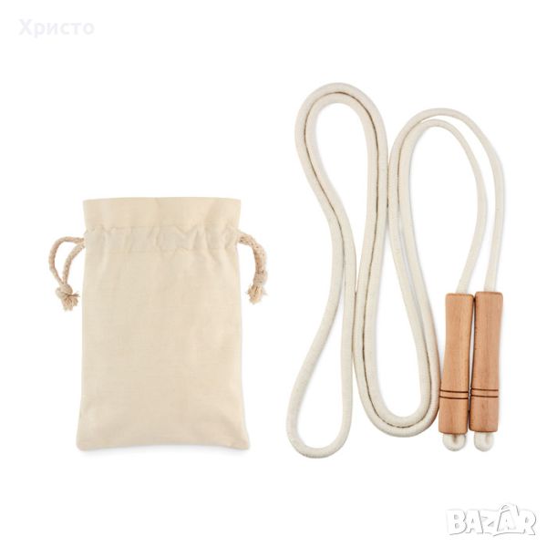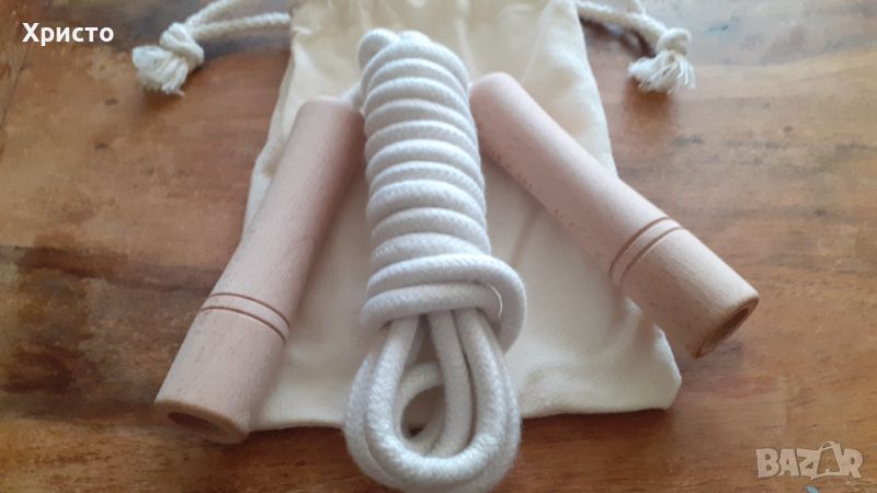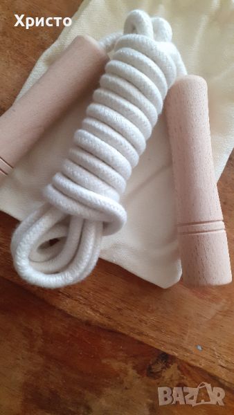 въже за скачане и игри, естествен памук и дървени дръжки