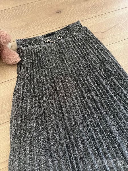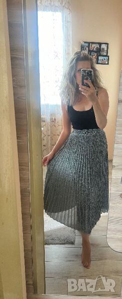 Полата е изключително красив солей модел. Талията е на ластик, с подплата е и не прозира. Миди дължина. На снимките не се вижда блясъка на сребристите нишки.