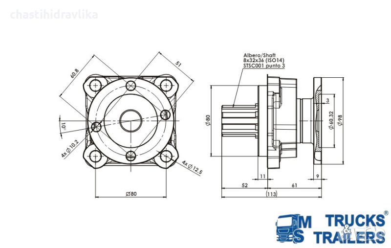 Използва се за свързване на включвател с 4 отвора и карданен вал.