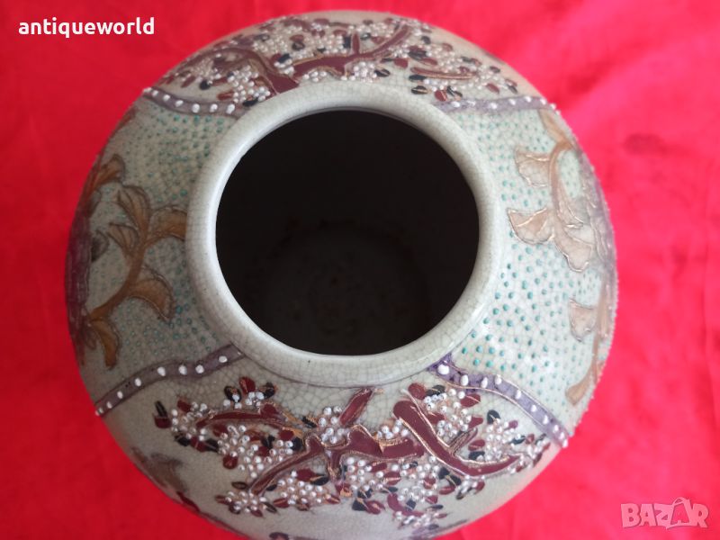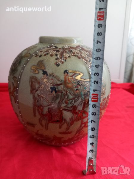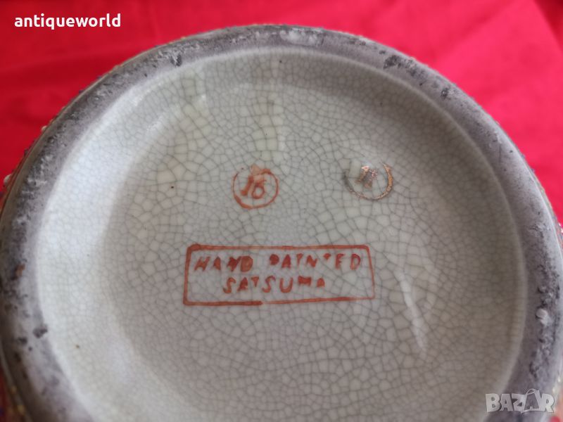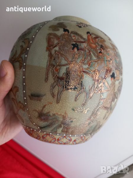 SATSUMA Стара Много Красива Японска Ваза Сатцума. Ръчно Рисувана , Злато. Маркирана.