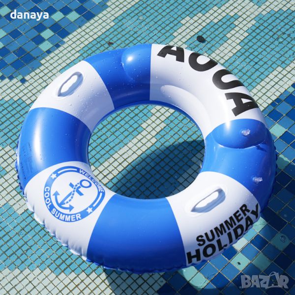 Голям надуваем пояс с атрактивен ярък дизайн и надпис Aqua. Поясът има дръжки и облегалка, което го прави удобно плувно средство за забавления в морето или басейна. Изработен от висококачествен траен винил, устойчив на надраскване и разкъсване, не избледнява от слънцето.