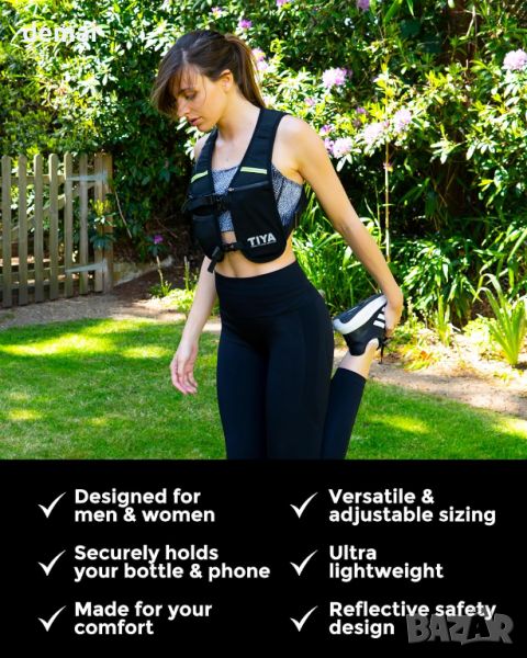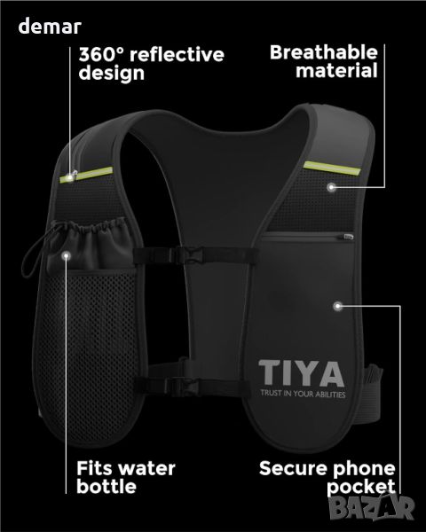 TIYA Running Hydration Vest – отделения за бутилка вода и смартфон – лека, водоустойчива, отразяваща