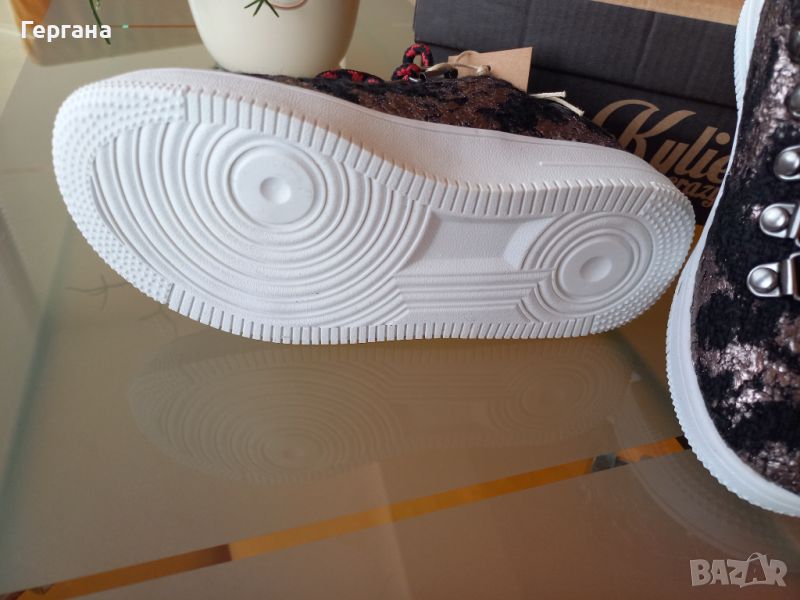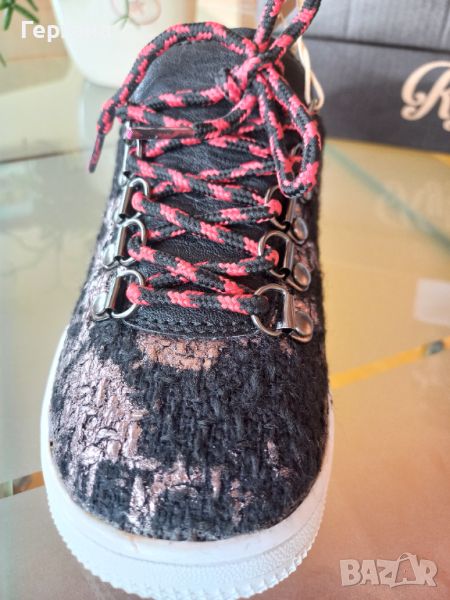 Детски спортни текстилни обувки чисто нови с ефектни връзки и нежен златист ефект.