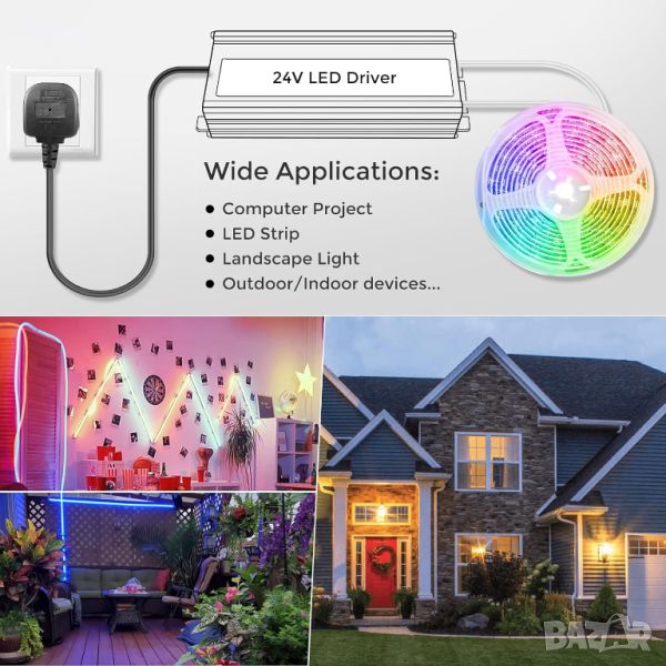 Вход: 90-265V AC 50/60HZ. Изход: 24V DC 8,33А 200W. Преобразува 240V AC в 24V DC, използва се широко за LED лентови светлини, LED крушки и други 24V DC LED светлини (≤200W). Метален корпус от алуминиева сплав, лесен за разсейване на топлината и осигурява стабилност. 100% водоустойчив IP67 защита за използване на открито. Автоматична защита за: късо съединение, претоварване, пренапрежение, свърхток, висока температура. Тип защита: Режим на автоматично възстановяване след отстраняване на състоянието на повредата.