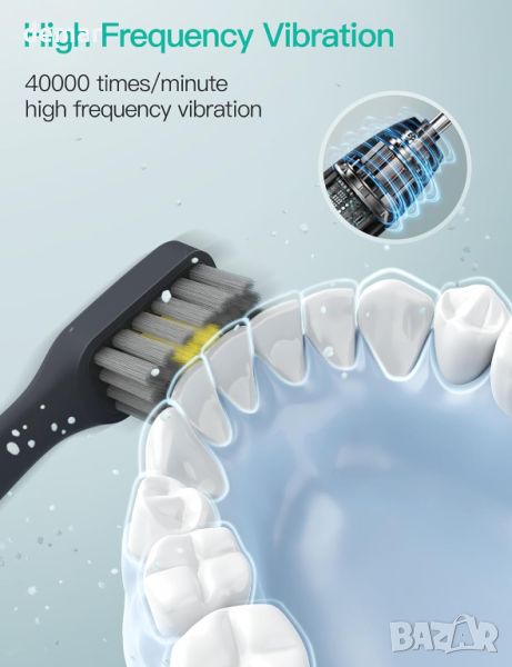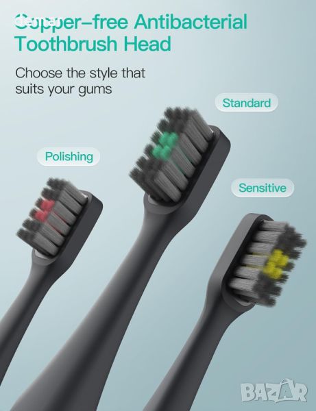 Тази четка за зъби с елегантна метална дръжка и основа в модернистичен стил е идеална за декориране на вашата баня. Тя разполага с три нива на твърдост: червено-полиране, зелено-средно и жълто-меко. Главата на четката с меко гумено покритие предпазва устната ви лигавица, докато влакната, напоени с въглен, осигуряват ефективно избелване на зъбите. Комплектът включва една глава на четка с червено - полиране, една глава на четка със зелено - средно, една глава с жълто - мека четка и една основа за зареждане.
