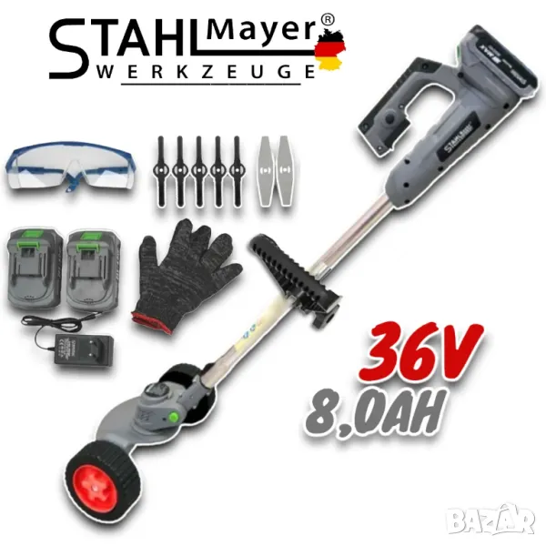 Акумулаторен Тример с Колела 36V 8,0AH Градински Храсторез за Трева количка STAHLMAYER 2x Батерии
