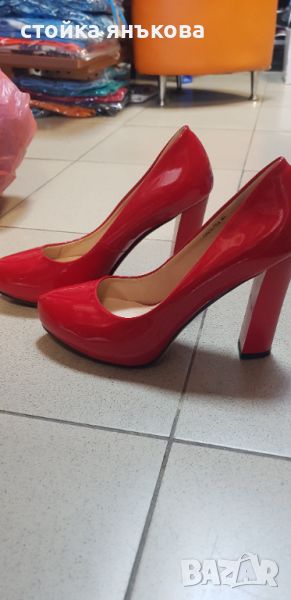Продавам дамски червени обувки лак, висок ток → Обява 46395933