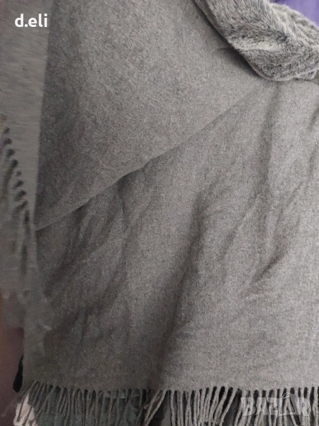 1. Огромен вълнен шал, тип пончо. Сив цвят. Обкантен с полиестър - имитация на косъм, за лесна подръжка(пране).
