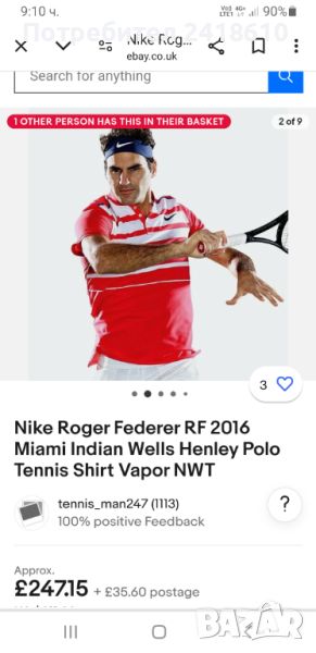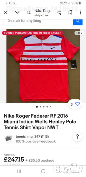 Nike Roger Federer Miami Indian Wells Vapor Dri - Fit Stretch Mens Size L ОРИГИНАЛ! Мъжка Тениска!