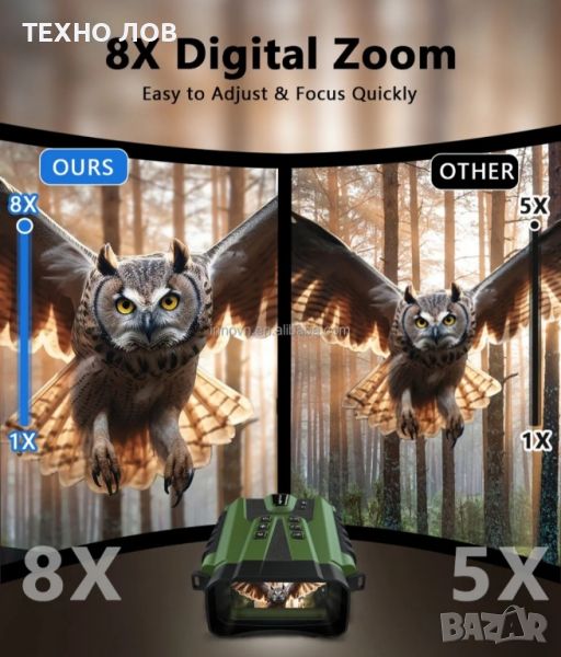 8х цифровото увеличение Ви позволява дa виждame oбeкmume ясно.