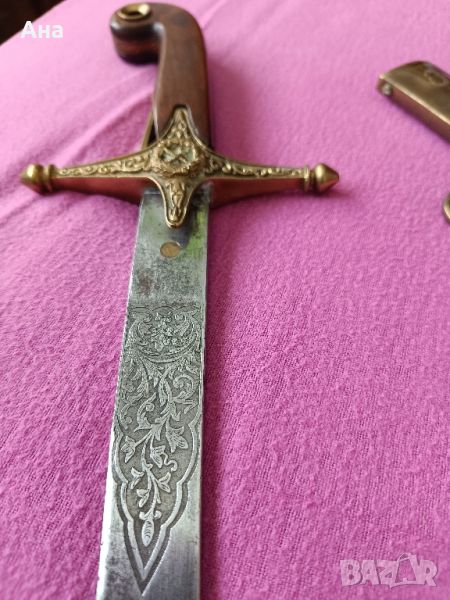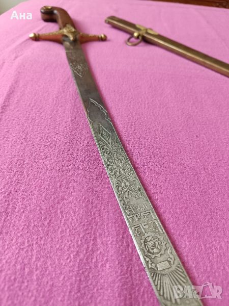 Османски шамшир , с изключително много гравюри по острието и от двете му страни .Много запазен без никакви луфтове в дръжката и острието.С оригиналната си кания .Обща дължина с Канията 97 см .