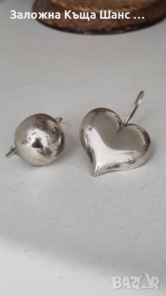 Две сребърни обеци с различни форми на сърце и кълбо 925 проба и общо тегло 10,60 грама с дължина 3 см