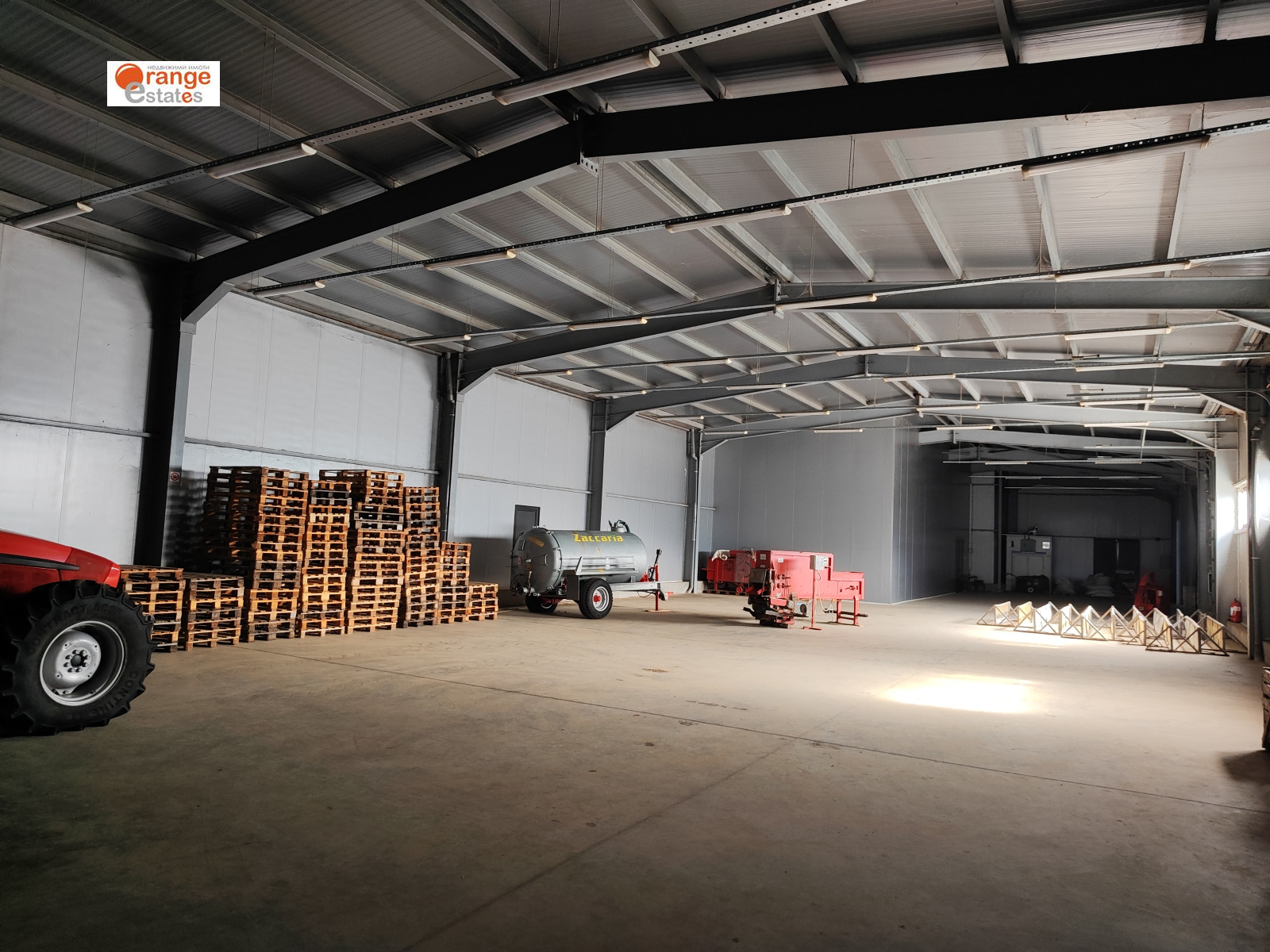 -Трети корпус 540 кв.м. скелетно стоманена конструкция: Основно хале, съблекалня, баня( мъжка и женска), офисно помещение, достъп към халето- портални врати, под-шлайфан бетон, стени-термопанели. Самостоятелно електрическо захранване.