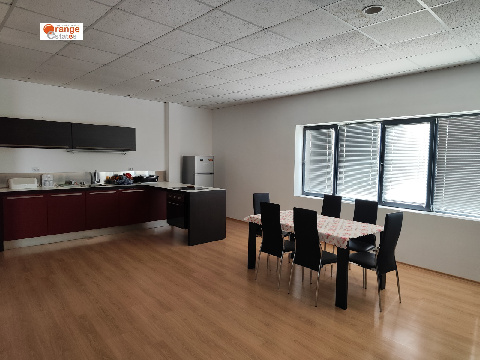 Офисна част 280 кв.м., скелетно стоманобетонна конструкция на два етажа, първи етаж входно фоайе и стълбищна клетка, втори етаж стълбищна клетка, етажна площадка, пет помещения, два санитарни възела. Под-мраморни плочи, ламиниран паркет, стени-латекс, алуминиева дограма. Изградена охранителна сиистема, интернет окабеляване. Базата отговаря на всички изисквания касаещи противопожарна безопасност.