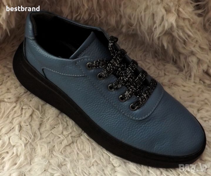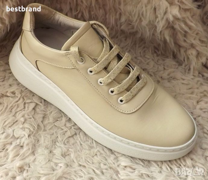 Дамски спортно елегантни обувки на не много висока, удобна подметка ,с анатомични стелки. Височина на подметката в предната част - 4 см., а към петата - 4.5см. За по-голяма здравина моделът е шит. Отговарят си на номерата. Предлагат се в два цвята- светло бежови с бяла подметка , и сини с черна подметка.