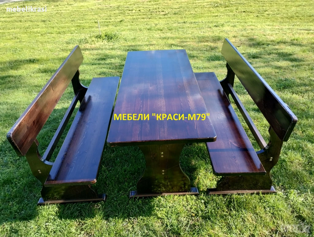 Баварски градински комплект. Маса с 2 пейки. Масив-в цвят. Наличен!