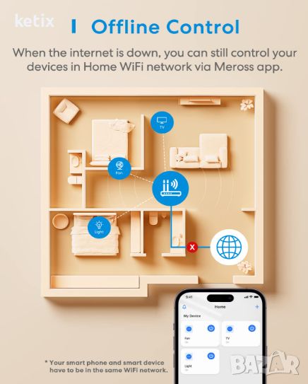 - Локален контрол: Когато сте у дома, приложението meross дава приоритет на локалния контрол и вашите действия получават отговор в рамките на милисекунди, независимо от интернет.