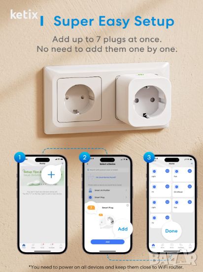 - Гласов контрол: WiFi контактът работи с Alexa и Google Home, по-удобно и по-бързо е да включите или изключите смарт щепсела чрез гласова команда.
