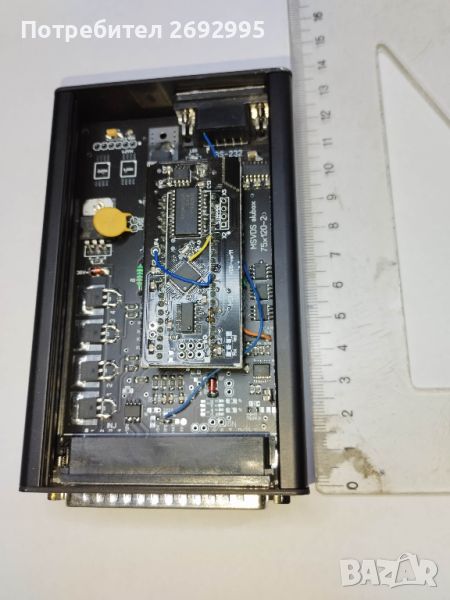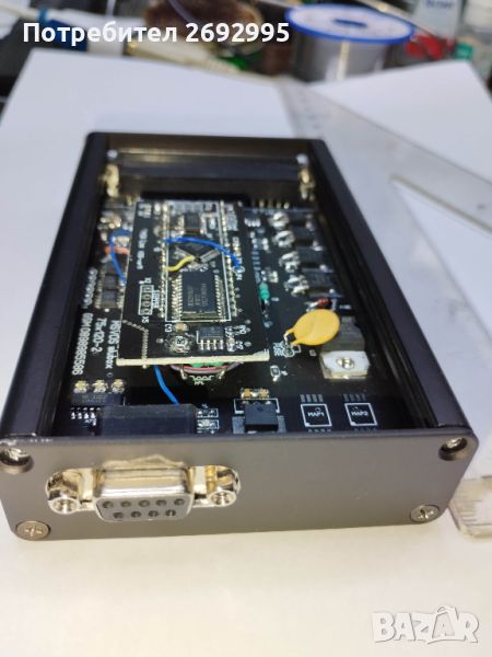 Кутията с устройството от снимката е алуминиева и има малки размери-приблизително 80х120мм.Височина 30мм.