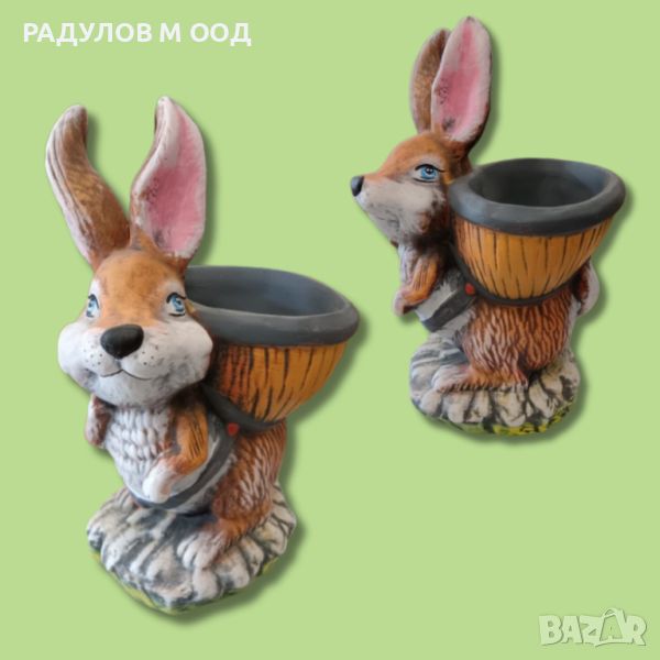 Градинска фигура с кашпа Заек с раница / 1890 → Обява 46404370