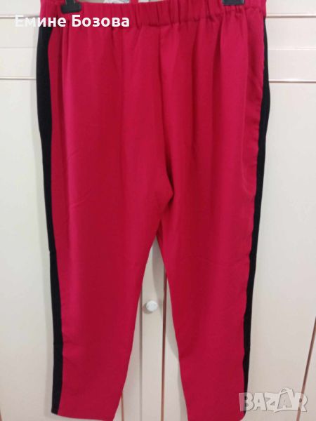 Червен панталон Desing by KappAhl р-р L с черни кантове два джоба талия отзад ластик на крачола долу цип.Средно плътна материя „шифон “Цена 9лв