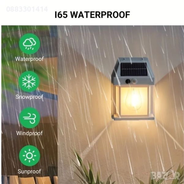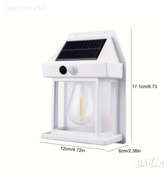 Соларна лампа за стена Ретро стил Сензор за движение Топла светлина