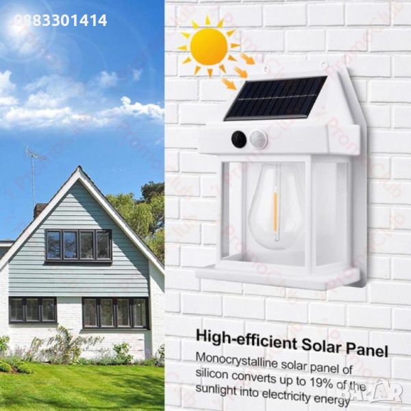 соларна лампа с двупосочно осветяване за фасада и красив визуален ефект.